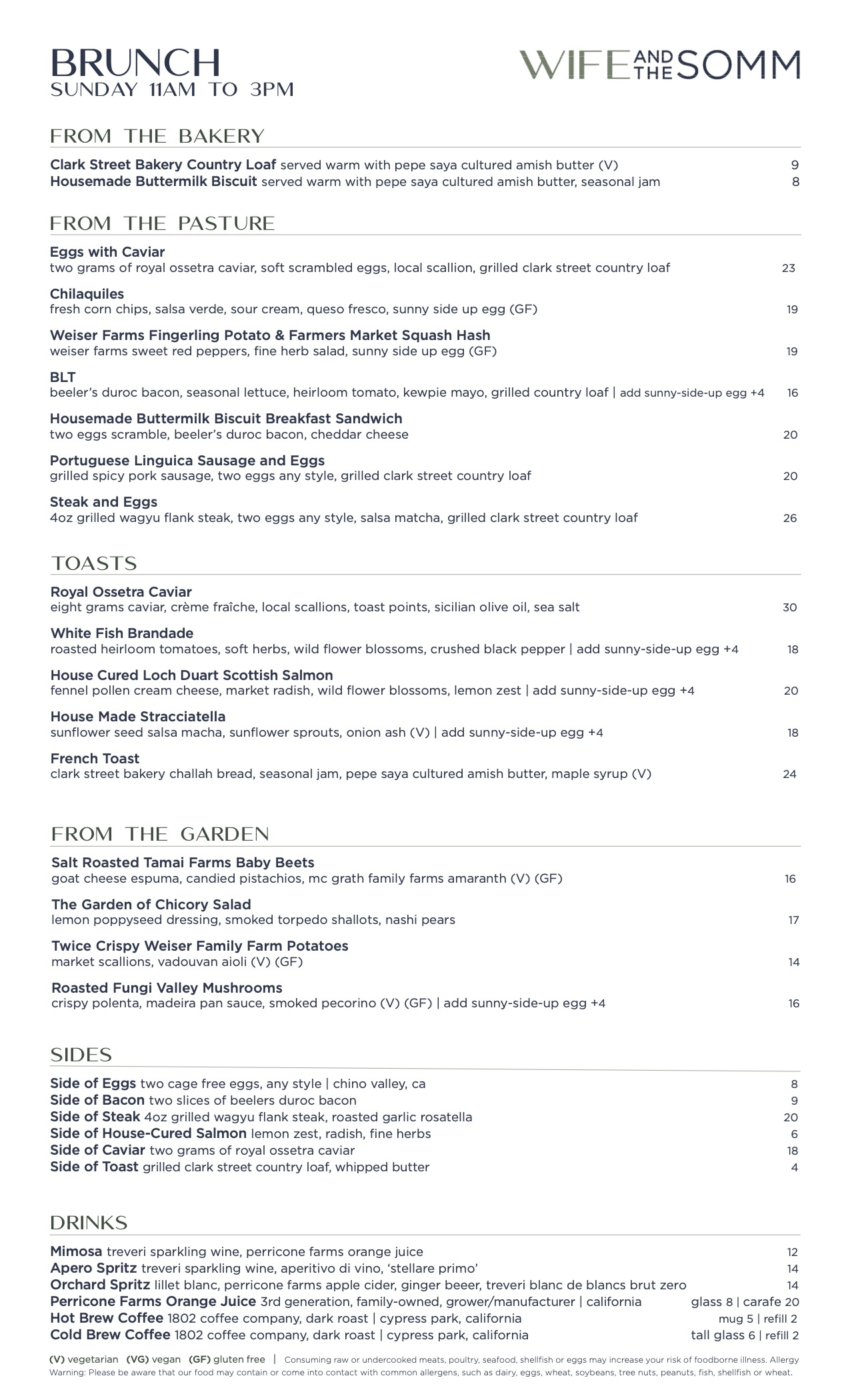 offering fresh light bites to a full seasonal dinner starting in the late afternoon, Wife and the Somm is the perfect place to relax and unwind in a comfortable, inviting space. with a strong by-the-glass program and value-driven pricing, our husband and wife team has created a menu with a variety of price points.